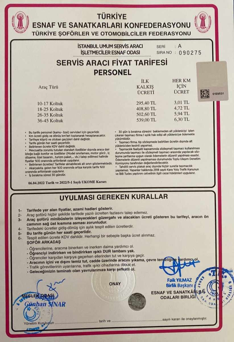 6 Nisan’da yüzde 40’lık zam aldıklarını hatırlatan Sinar, “0-1 kilometre 554 lira şu anda. Buna yüzde 35 rehber personel ücreti ekleniyor. En uzak mesafe 23-25 kilometre bin 330 lira. Etüt olan okullarda, etüt ücreti ekleniyor. Şu anki tarife bu. Biz öğrenci ve velilerimizi de düşünüyoruz. Onları üzmek istemiyoruz ama ekonomik koşulları değerlendireceğiz. Ona göre bir karar vereceğiz.” diye konuştu.
