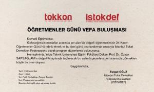 Oğuz yaptığı açıklamada;”25.11.2025 Çatladıkapı sosyal tesislerinde İstanbul Tokat dernekleri federasyonu (İstokdef) olarak düzenlediğimiz Öğretmenler Günü Vefa Buluşmasına katılarak güzel bir sunum yapan Yıldız Teknik Üniversitesi Eğitim Fakültesi Dekanı Sayın Prof. Dr. Özkan SAPSAĞLAM, İstanbul İl Milli Eğitim Şube Müdürü Sayın Murat GÖZÜDOK, Şube Müdürü Sayın Menderes KAYA, İstanbul İl Milli Eğitim Teftiş Kurulu Başkan Yardımcısı Bahattin ÇITAK, Gaziosmanpaşa İlçe Milli Eğitim Müdürü Sayın Fatih TOPSAKAL, Bağcılar İlçe Milli Eğitim Müdürü Sayın Mehmet SANSAR, Fatih Belediye Başkan Yardımcısı, Sayın Hamdi COŞKUN, Tokat’tan gelerek katılan öğretmen Sayın Ali BAL, Tokat Konfederasyonu Başkanı Sayın Ahmet YILMAZ, geleceğimizin mimarları değerli öğretmenlerimize ve siz Yönetim Kurulu Üyelerimize emek, destek ve katılımları için çok teşekkür ederiz. Birlikte nice güzel programlarda buluşmak ümidiyle…” dedi.