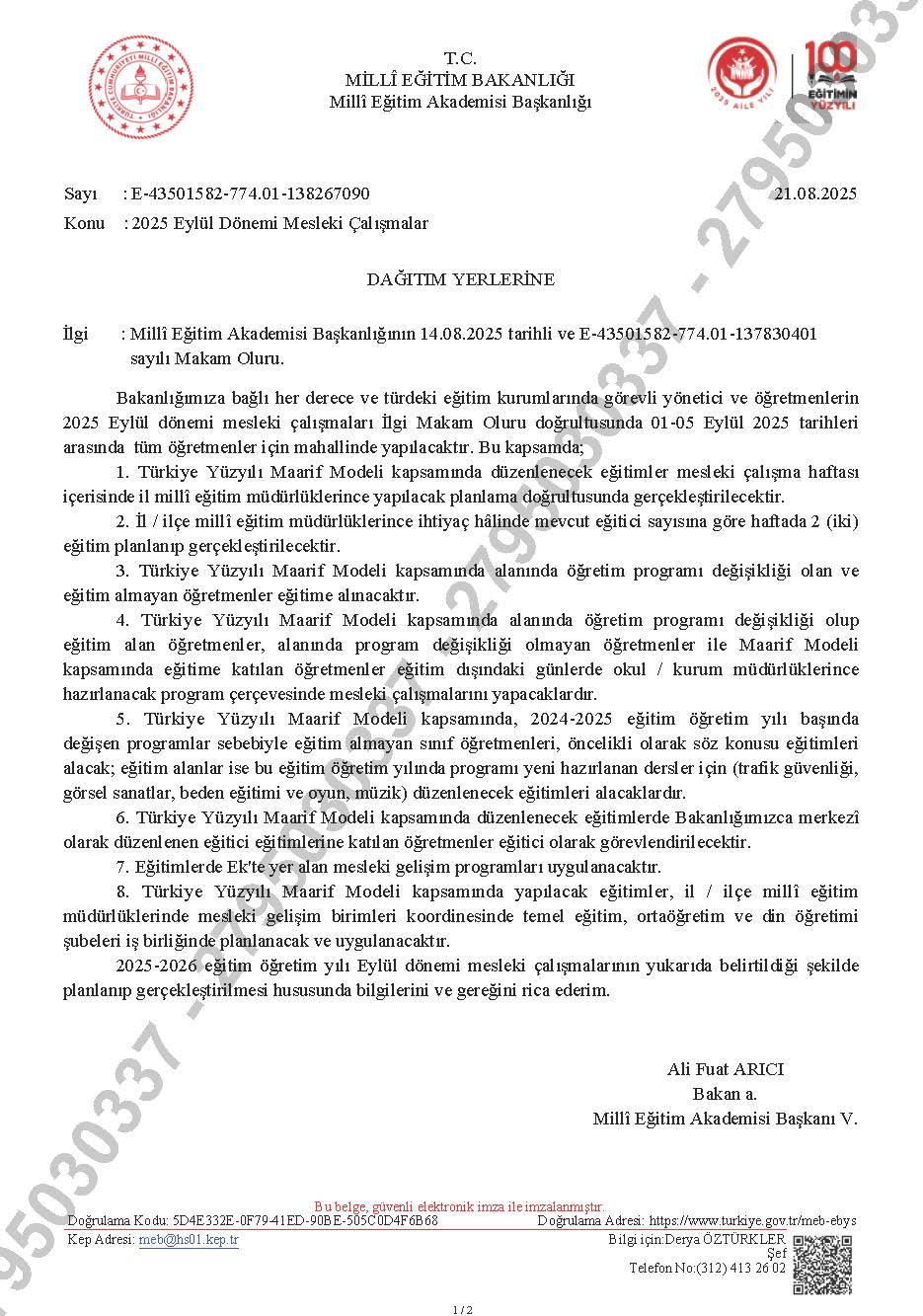 Okul / kurum yöneticileri ve öğretmenlerin 2025-2026 eğitim öğretim yılı Eylül dönemi mesleki çalışmalarını yukarıda belirtildiği şekilde gerçekleştirmeleri gerekmektedir.